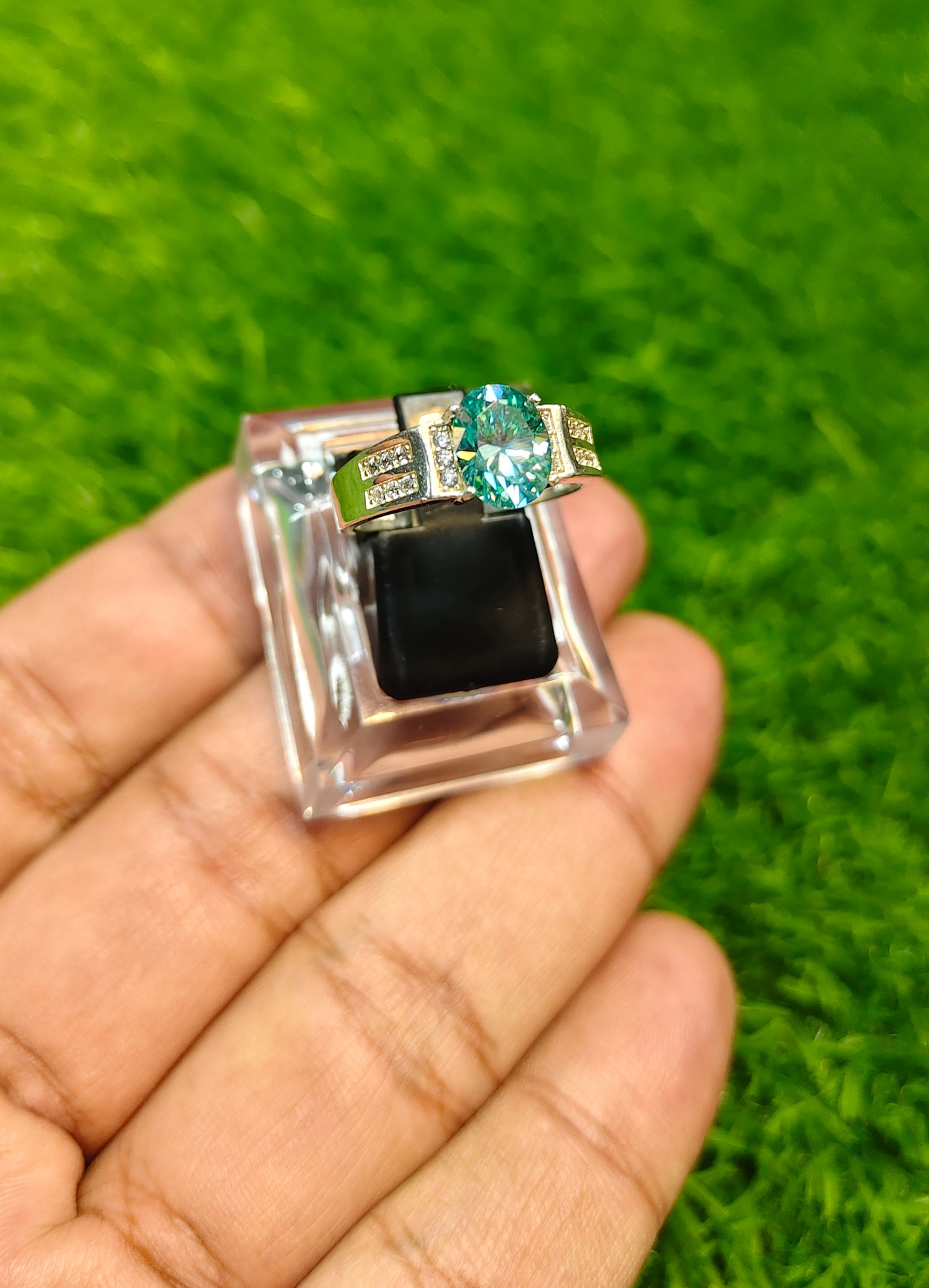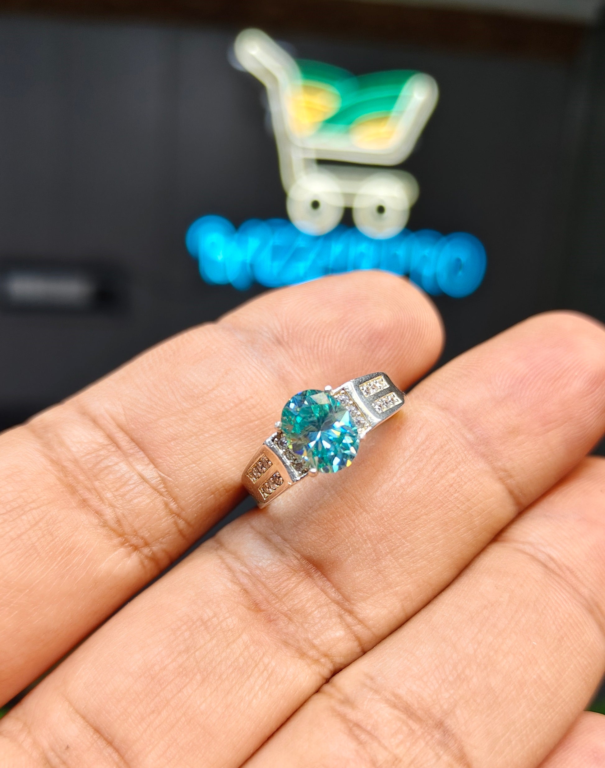 Aqua Moissanite Diamond Ring