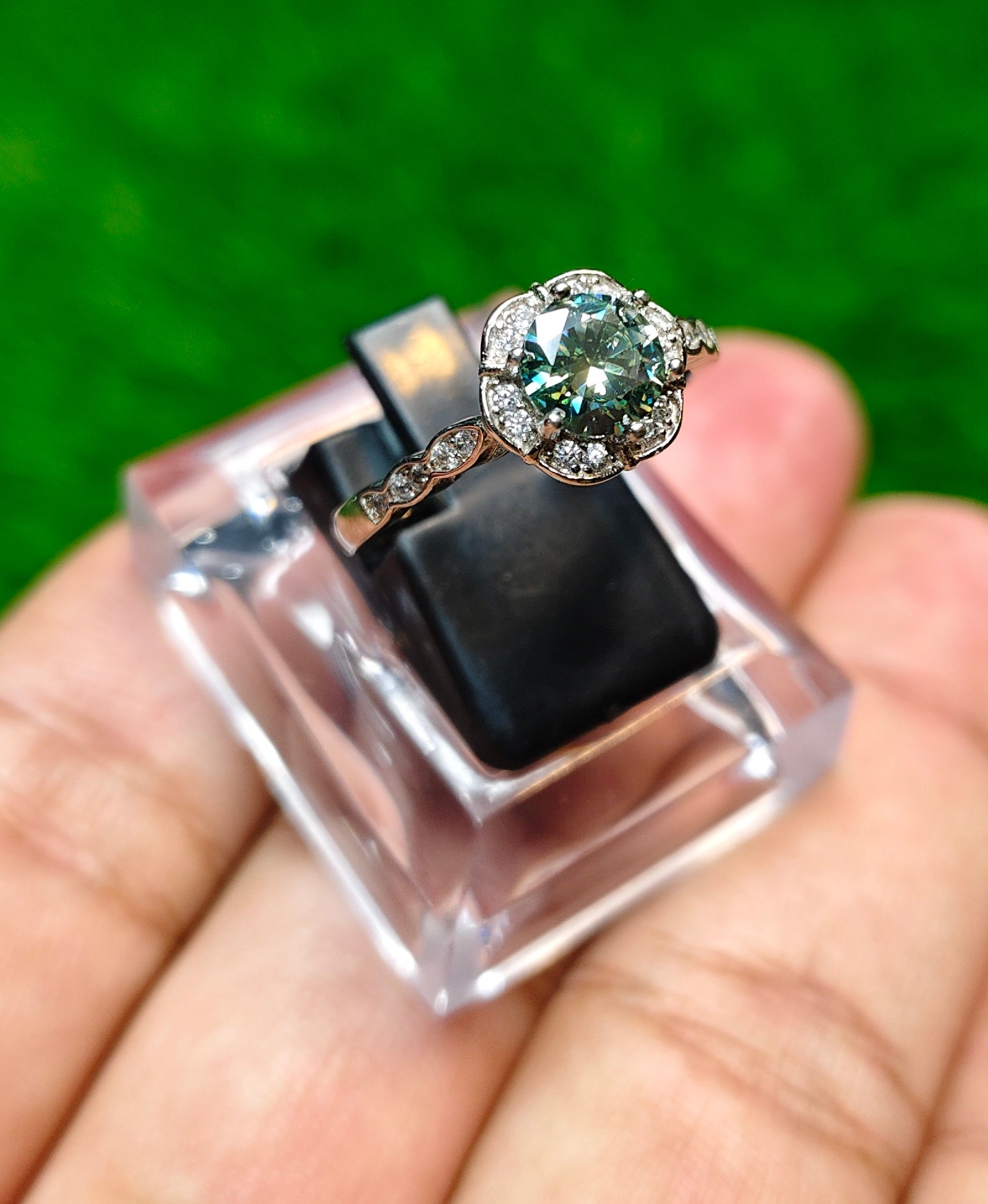 Green Moissanite Diamond Ring