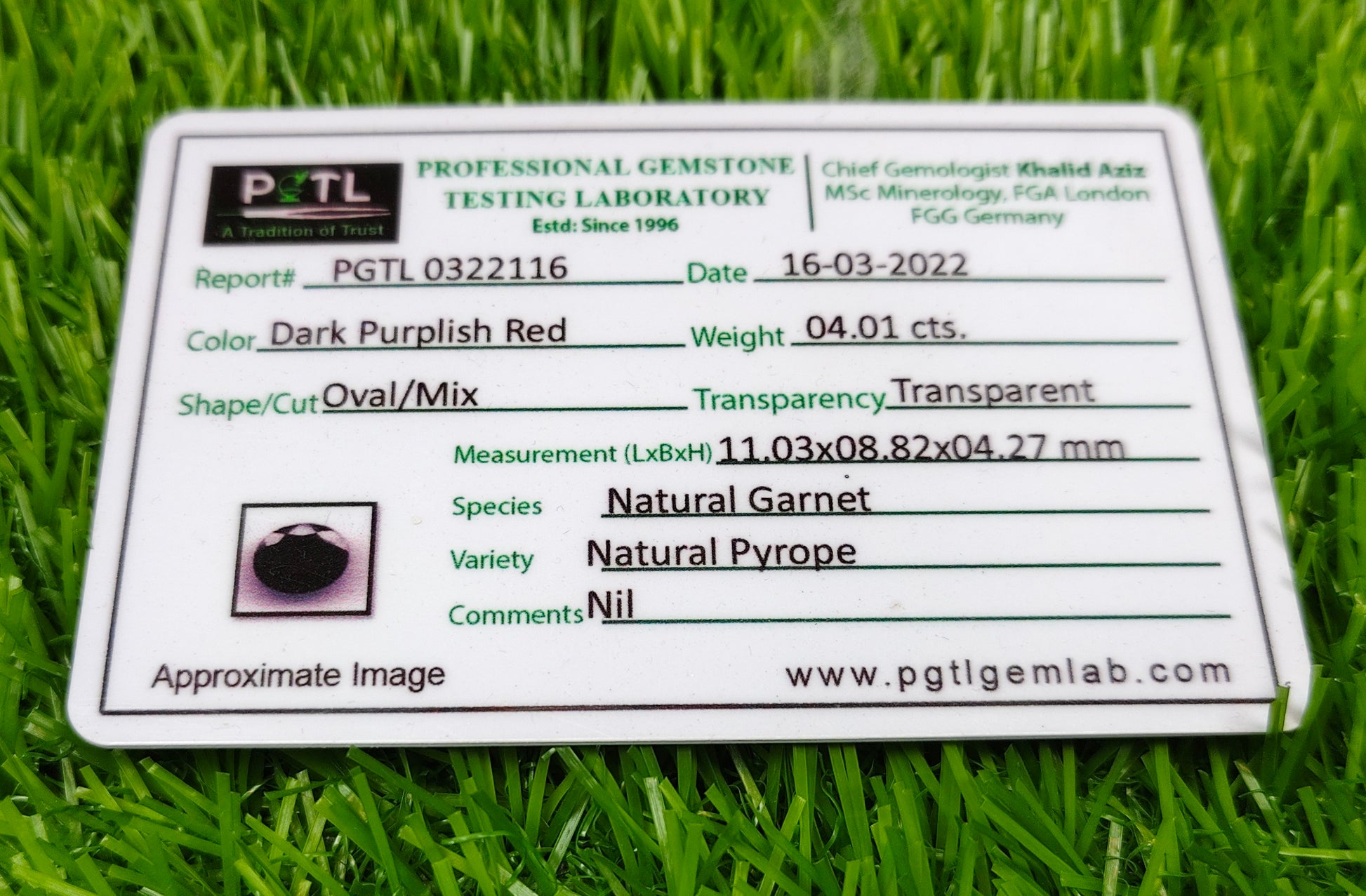 Garnet With Lab certificate